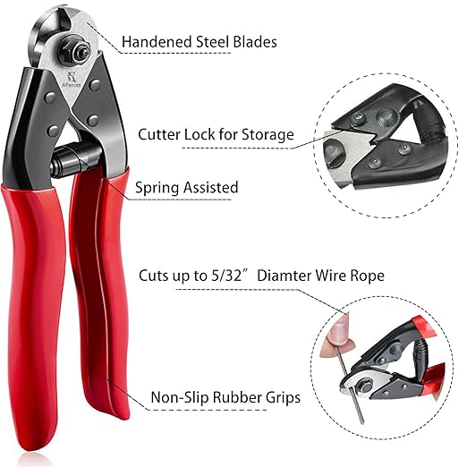 • 【1/8" Metal Cable 】Our 1/8 Metal Wire has a Breaking Strength of 1700 Pounds and a Working Strength of 352 Pounds, with Surface Smoother and Free of Burrs,Fine Workmanship, Strong and Durable, Use the Cutters inside Wire Cable Kit to Cut the Length of Stainless Steel Rope You Need for a Variety of Hanging and DIY Activities.