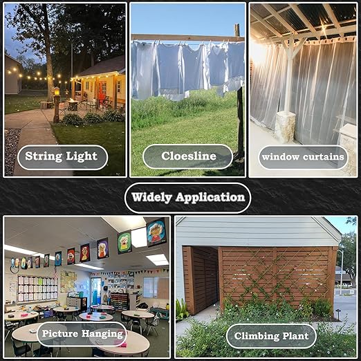 • Recommended Uses For Product : cable railing kit, hanging wire, garden wire, sun shade hardware kit, climbing plants support, clothesline, string light hanging kit outdoor, curtain cable wire system, guide wire for outdoor string lights, tent rope, and deck cable railing cable railing kit, hanging wire, garden wire, sun shade hardware kit, climbing plants support, clothesline, string light hanging kit outdoor, curtain cable wire system, guide wire for outdoor string lights, tent rope, and deck cable railing