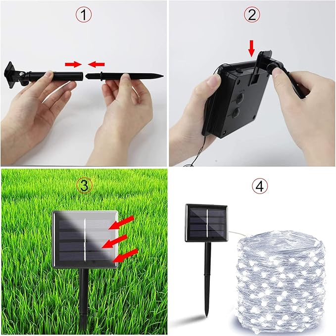 • 【Quick Charging Technology & Energy-Saving & High Efficiency】: This outdoor Christmas string lights charging by solar energy, have no extra utility electric cost, and no need to replace the battery. it can work up to 10-12 hours after being fully charged (6-8 hours).