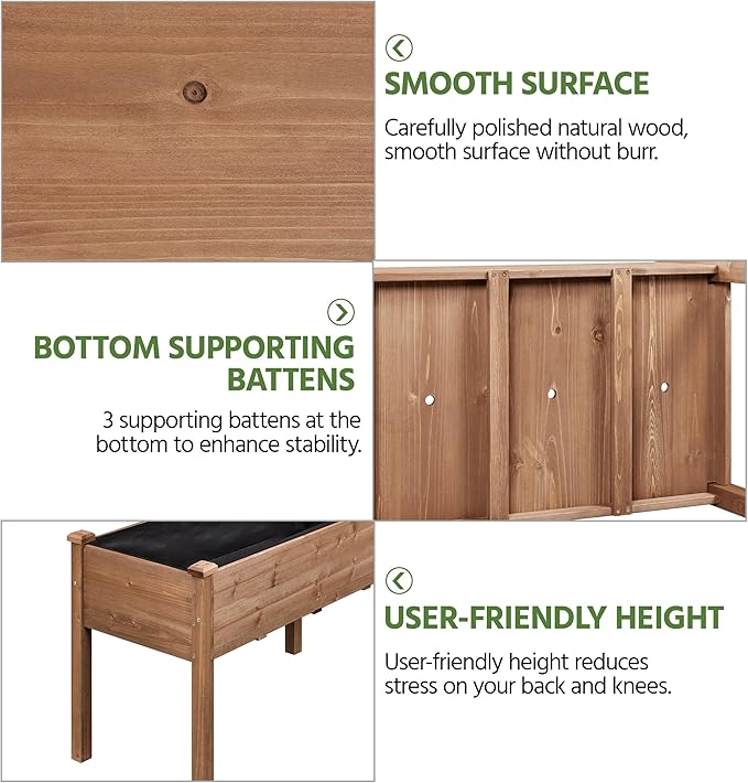 • STABLE RECTANGLE STRUCTURE -- Featured with a rectangular look, this elevated planting box has four side plates tightly inserted into grooves on the legs. Wooden covers and screws lock them in place. Wooden legs and three additional battens below support the entire bed steadily