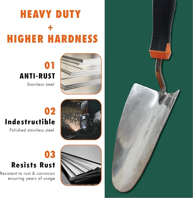 • 【Large Heavy Duty Gardening Tool 】Compared to other aluminum gardening tools, this 304 stainless steel tool of ours is longer and bigger for easier use, won't bend or break, and can quickly tackle any challenge in gardening.