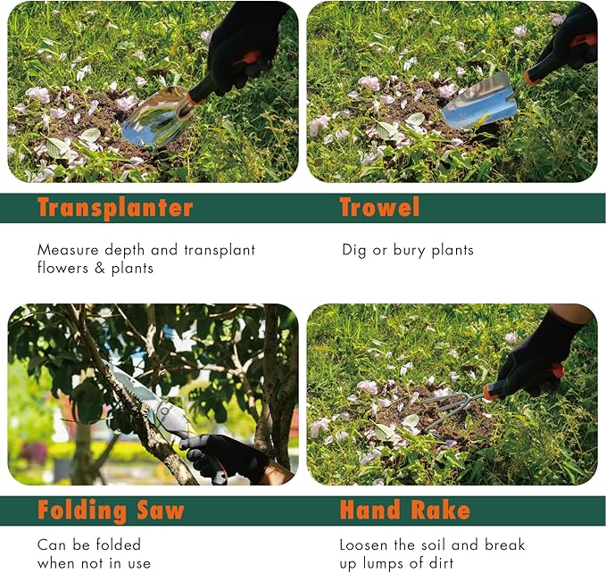 • 【An Excellent Gift For Women and Men】Surprise your friends, family, hobbyists and gardening enthusiasts with this complete 8-piece set of garden tools for gardening and be sure that you will make a lasting impression! Ideal gardening gifts for women and men on a birthday, anniversary, Easter, Christmas, Father’s Day, Mother’s Day, holiday and other special occasions!