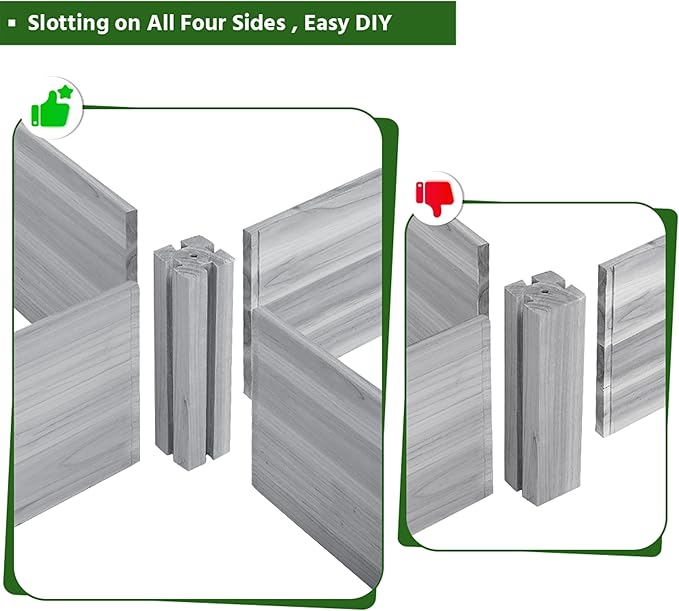 • UPGRADED SLOTTING FOR FLEXIBLE DIY -- The corner posts have been upgraded that the number of slotting on the posts is increased from 2 on the opposite 2 faces into 4 on 4 faces. Such a change enables users to combine two or more such planting beds more flexibly and fixedly