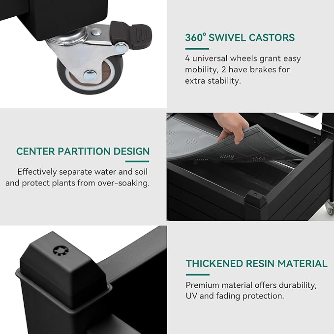 • Innovative Water Level Monitoring: Our planter box with trellis features a central divider that effectively separates soil and monitors water levels via a float system; Side drainage holes ensure optimal moisture control, ideal for plant growth