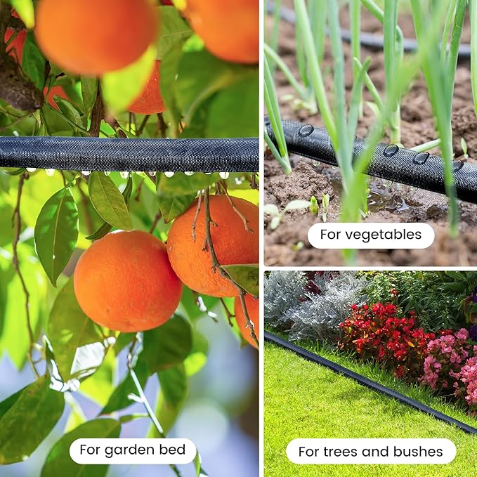 • 【Easy to Create an Irrigation System】The flat soaker hose can easy to place or move in your garden, which can be easily connected to a faucet or other hoses, and you can also connect it with a timer. You only need to install the hose, turn on the switch and it will automatically add water to the plants, making your irrigation easier and more effective. Easy installation makes it easier for you to build your irrigation system.
