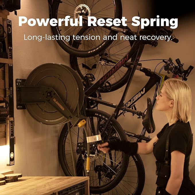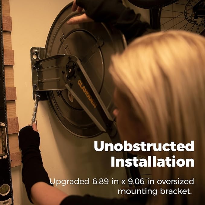 • Larger Mounting Bracket: GLAHODEN compressor hose reel has increased the bracket size to 6.89 in × 9.06 in, you can easily access the back of the air hose reel retractable to tighten the bolts. The upgraded high-strength expansion bolts make the installation more solid and reliable.
