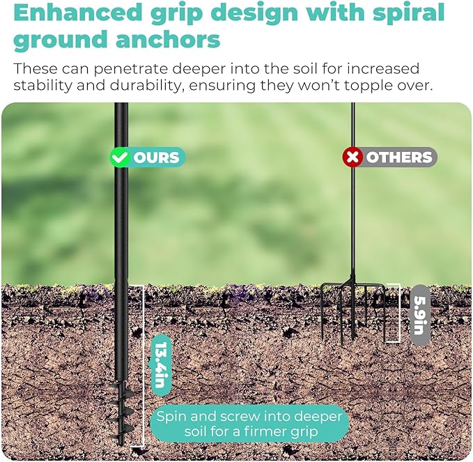 • BEAUTIFUL AND PRACTICAL: Featuring a curved hook on top and a spiral base design, this hook is easy to install. It's great for hanging flower pots, bird feeders, lanterns, and wind chimes, enhancing the beauty of your garden or backyard