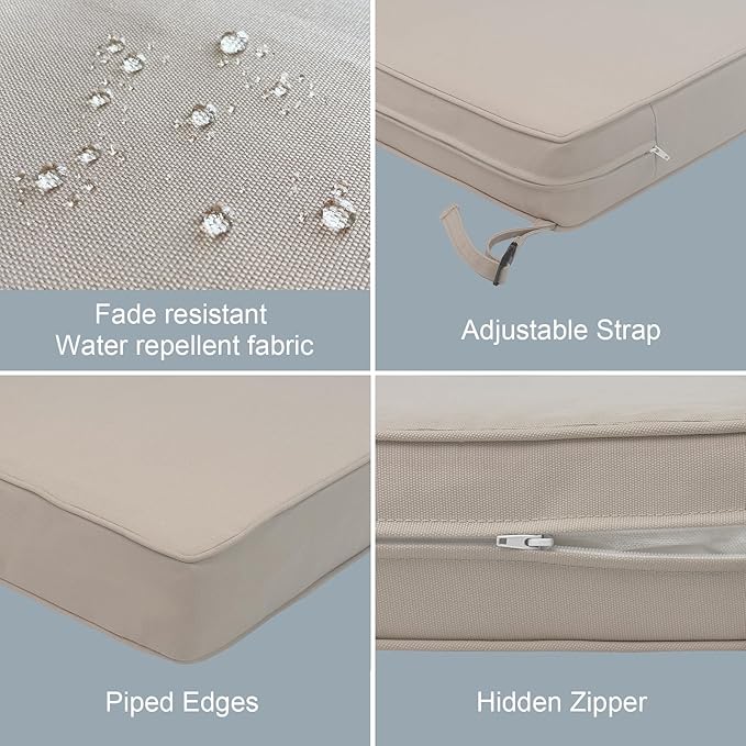 • NON-SLIP DESIGN: Each outdoor furniture cushion with adjustable straps help keep cushion securely attached to your chairs. You can sit back and relax without worrying about the cushions shifting or slipping