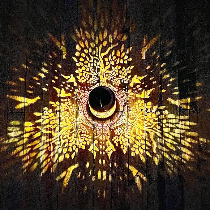 • 【Perfect Garden Decorations】- Tree of Life solar lantern can project unique and beautiful patterns in a dim environment, creating a gorgeous and warm atmosphere to bring life and fun to your garden and attract your family or friends. The unique hollow out design and beautiful antique bronze color give it an artistic touch, perfect for decorating gardens, backyards, corners, Outside, sidewalks and many other scenes.