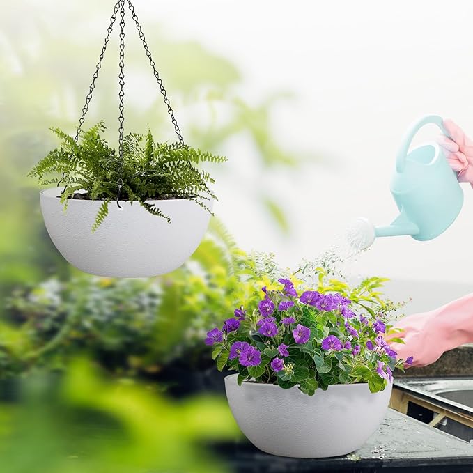 • Lightweight and Adjustable Hanger: Large hanging planters plant pots are made from brand new plastic, these planters are light enough to hang anywhere indoors and outdoors. Feel free to adjust the height to your liking with its sturdy heavy-duty triple chains hanger.