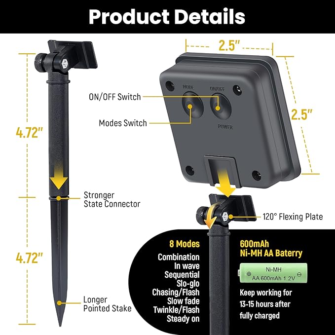 • Durablilty and Weatherproof: Designed with durability in mind, our IP44 Waterproof solar string lights outdoor withstand all weather conditions. Whether it's rain, snow, or sizzling heat, these solar outdoor string lights for the garden patio remain shining, making them ideal for year-round outdoor decorations and celebrations.