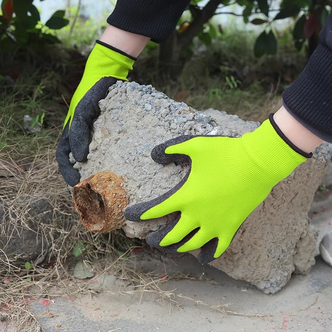 Evridwear Crinkle Latex Rubber Hand Coated Safety Work Gloves for Men Women General Multi Use Construction Warehouse Gardening Assembly Landscaping (Medium,Green- 12Pair)