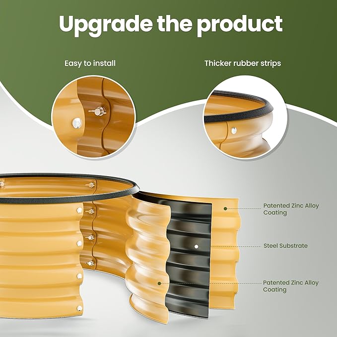 ZXZYHFTY Round Galvanized Raised Garden Bed kit,Yellow Outdoor Garden Raised Planter Box, Round Large Metal Raised Garden Beds for Vegetable 2 * 2 * 1ft 1 Pack