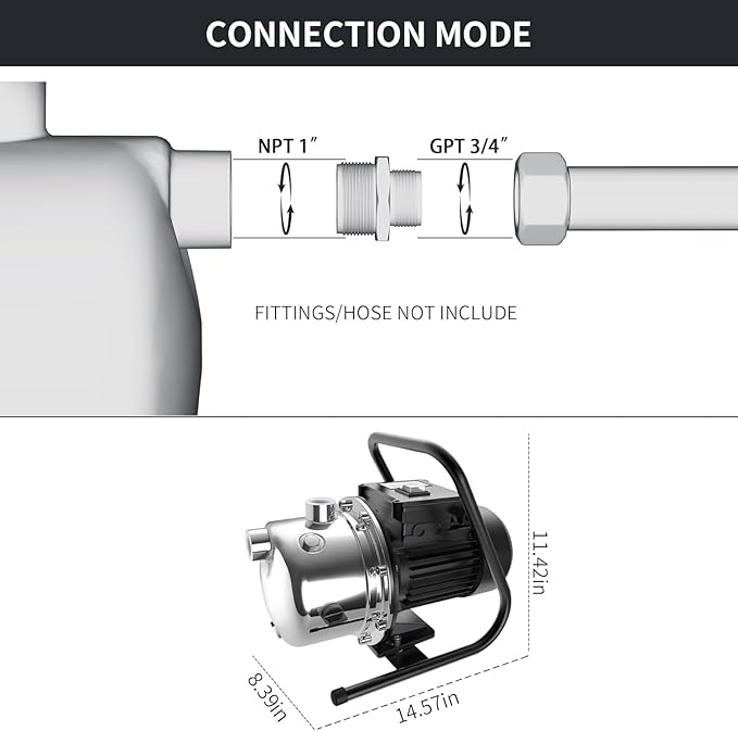 • [POWERFUL PERFORMANCE] The electric water pump with 1.2 HP powerful motor ensures strong performance in a low energy consumption. The well pump can offer maximum flow rate up to 1828 GPH and max lift water up to 157 feet
