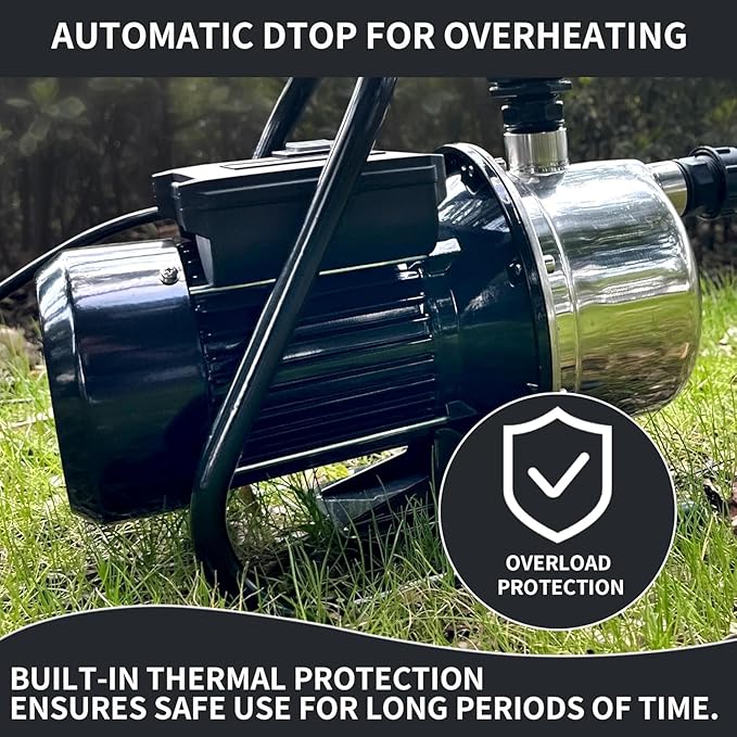 • [SAFETY ENSURE] LANCHEZ shallow well pump pay attention to safety. Built-in thermal overload protection for continuous duty use in water removal application, will prevent the motor from overheating and burning. You can start the water booster pump with the safety switch after plugging it in to the 110V 120V AC power source