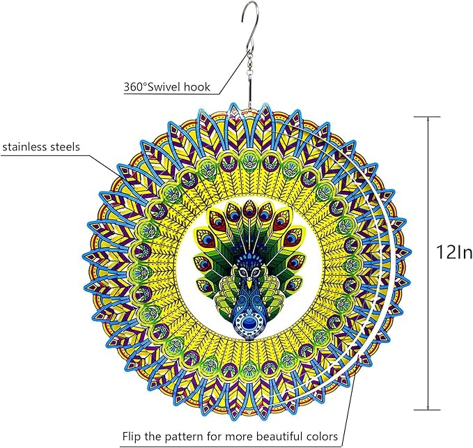 • 【Kinetic Art 3D Visual Sense】The colorful peacock wind spinner can be multi-layer flip, the unique flow of light surface design, in the breeze under the 360 deg rotation, especially in the sunshine, this bright and charming landscape, is so natural elegance and brilliant colors