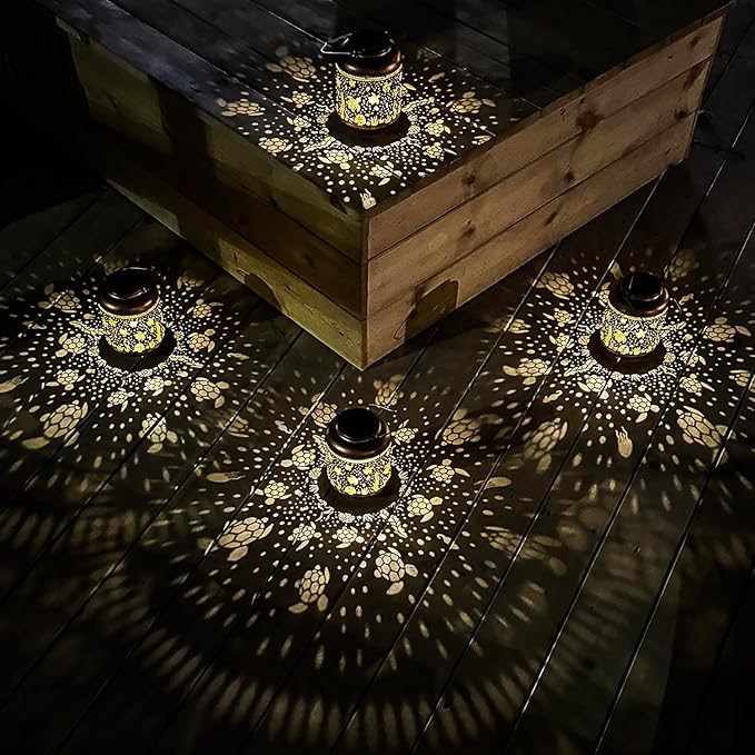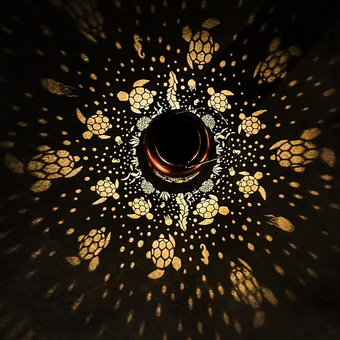 • 【Perfect Garden Decorations】Sea Turtle solar lantern can project unique and beautiful patterns in a dim environment,creating a gorgeous and warm atmosphere to bring life and fun to your garden and attract your family or friends.The unique hollow out design and beautiful antique bronze color give it an artistic touch,perfect for decorating gardens,backyards,corners,Outside,sidewalks and many other scenes