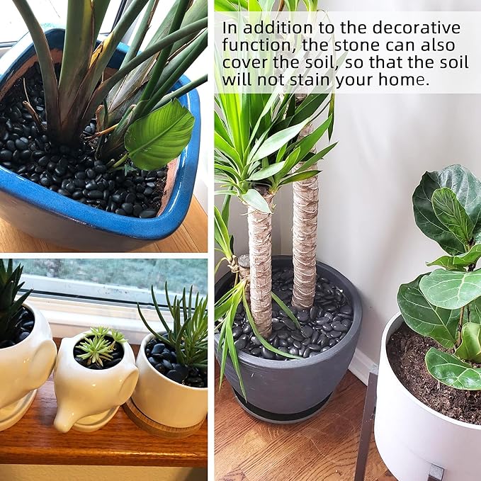 • 🌑【NATURAL STONES】- These black stones are non-toxic and eco-friendly river rocks. Their natural attribute will make them last longer because they will not deteriorate like mulch does.
