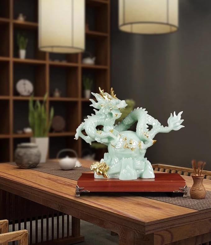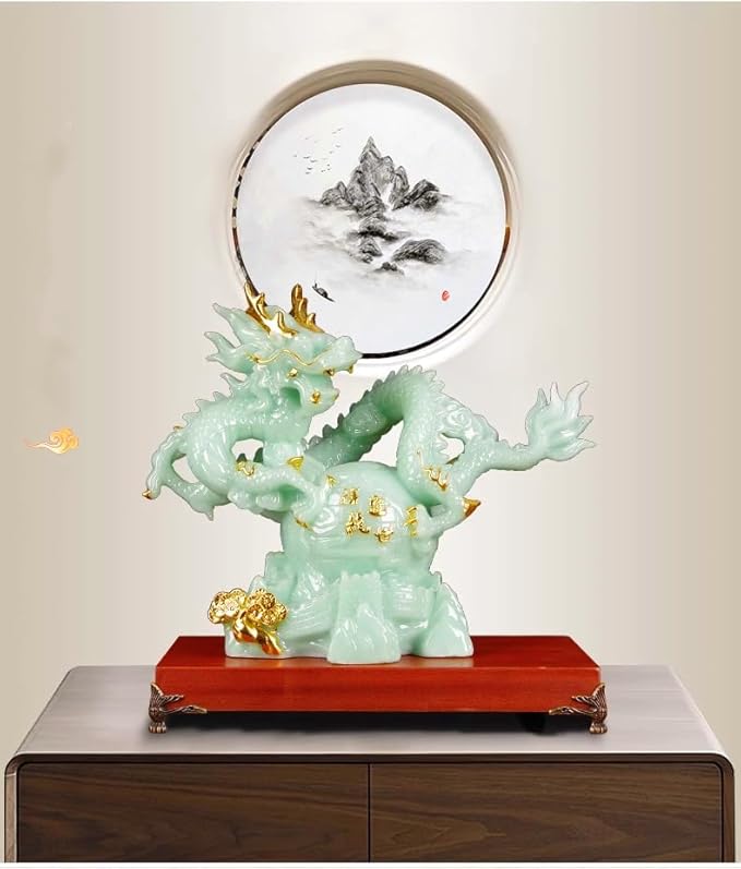 12.2 INCH Chinese Feng Shui Dragon Lucky Jade Color Figurine Statue for Luck & Success,Home Office Bookshelf Desk Decor,Green