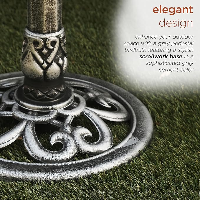 • 28" PEDESTAL BIRDBATH WITH BASE: Captivates a variety of birds and feathered friends while bringing life to any garden, patio, backyard, or deck