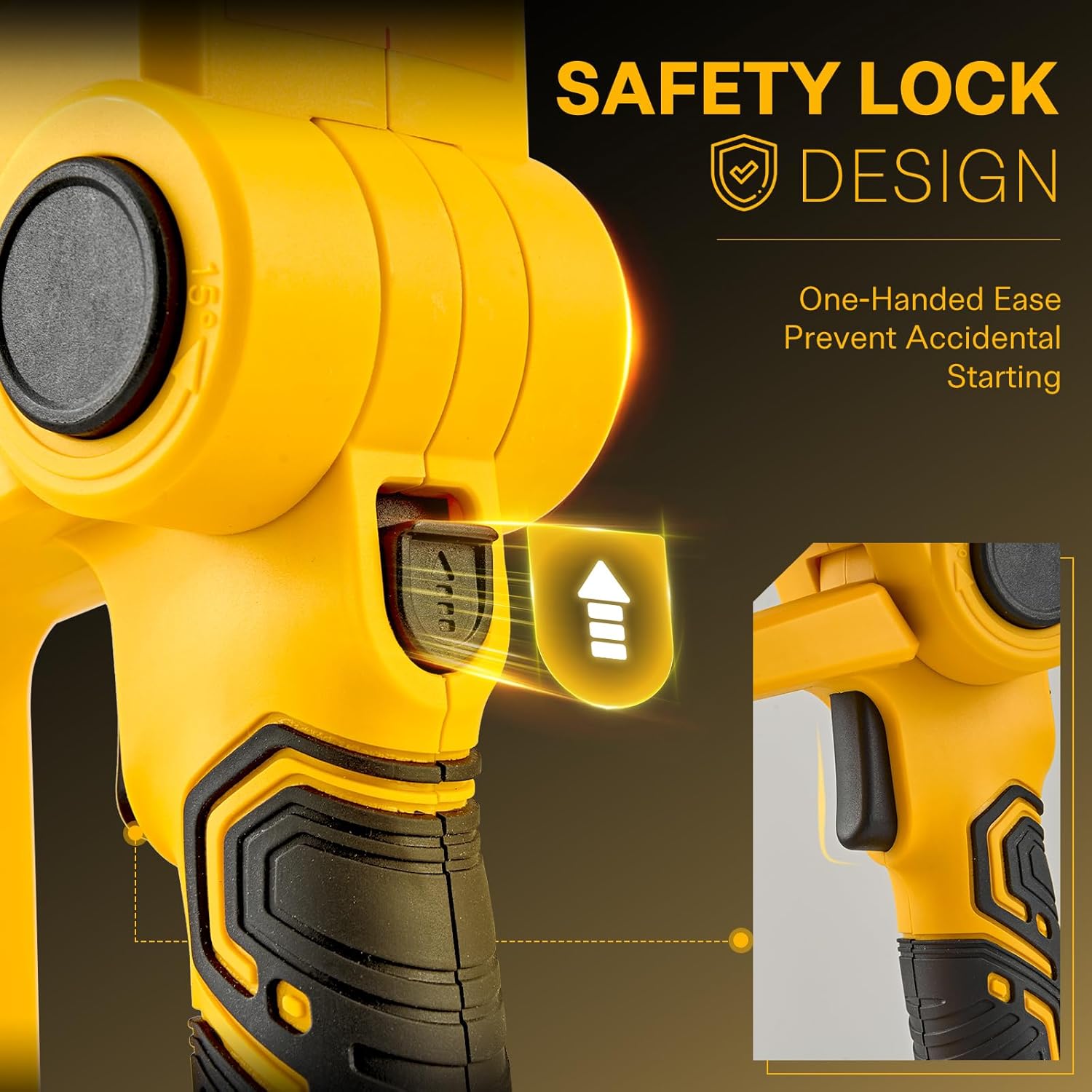 • 【DOUBLE SAFETY LOCK】The sakerplus hedge trimmers cordless with battery is equipped with safety features, including blade guards and a safety switch, to prevent accidental injuries during use. The upper trigger safety lock-out ensures accidental starting prevention—simply push the trigger lock and press the trigger simultaneously to start the shrubbery trimmer. Switching blades of sakerplus bush trimmer cordless is easy, just press the buttons on both sides.