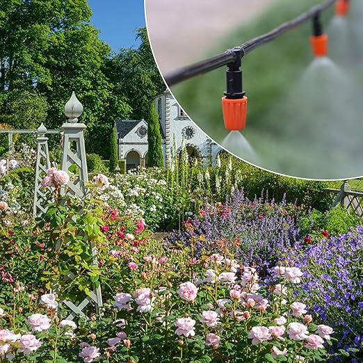 • Versatility: The automatic irrigation kit is versatile and can be used for misting, lawn irrigation, courtyard watering, roof cooling, agriculture, vegetables, greenhouses, flower beds, and even swimming pool mist cooling irrigation.The automatic nature of the system simplifies the irrigation process, making it convenient for various applications.