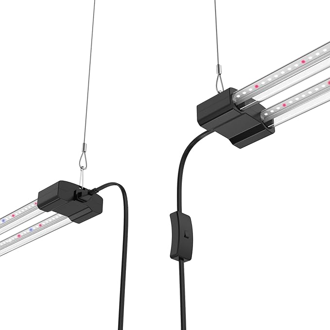 DYMOND BoostGro LED Seed Starter Grow Light Full Spectrum Linkable 5000k Daylight + 660nm Red + 450nm Blue Indoor Plant Lighting Fixture (2 FT, Black)