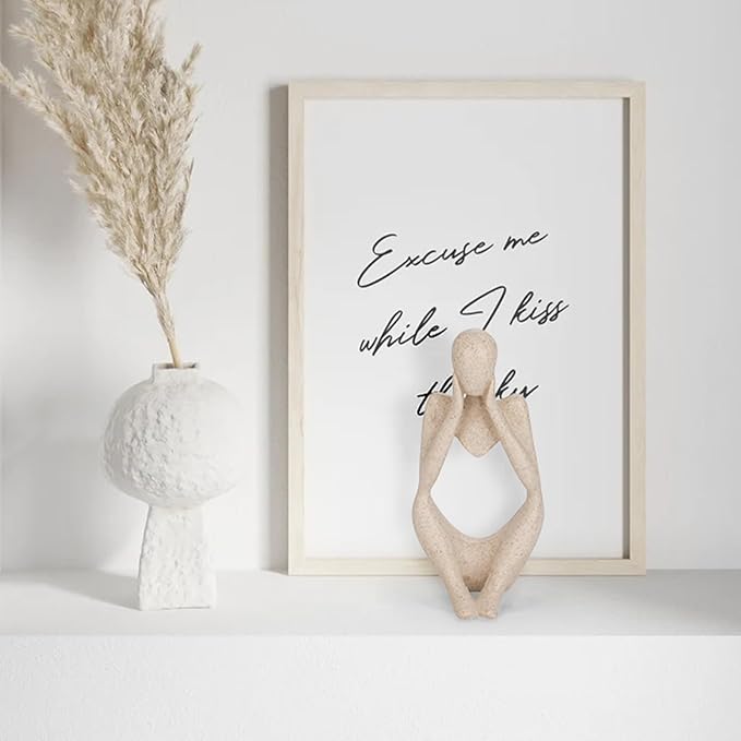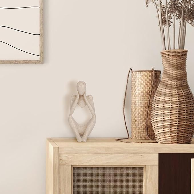 INNOLITES Boho Decor Thinker Statue Abstract Art Sculpture, Sandstone Resin Collectible Figurines for Home Living Room Office Shelf Decoration(Middle, Large)