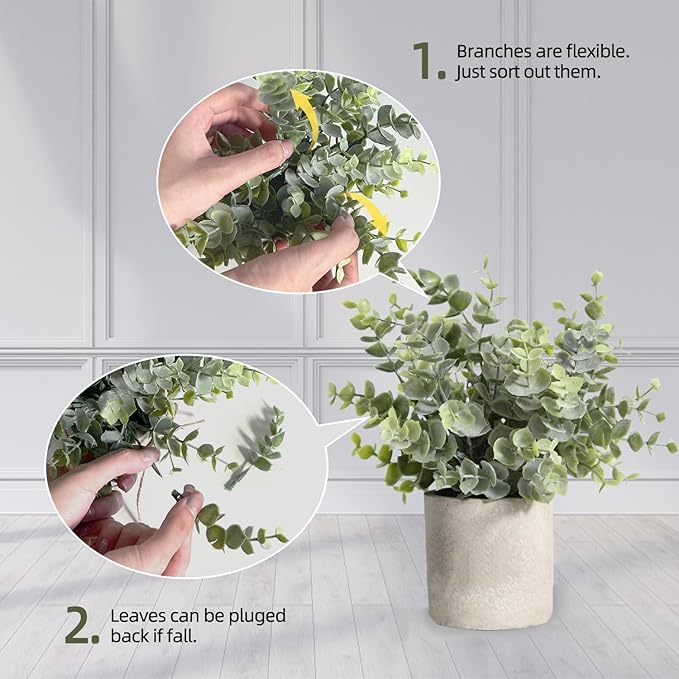 • EASY TO CARE: These small fake plants potted thrive even without sunlight, effortlessly adding greenery to every corner. If leaves get bent during shipping, simply reshape them—they’ll bounce back to perfection