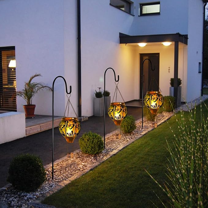 • VERSATILE USE - Butterflies solar balloon lanterns outdoor hanging with hooks can be decorated on porches, fences, garden trees, Windows, gazebos, pergolas, balconies. It can be used as a garden gifts for moms, grandma, sisters, gardening enthusiasts, when celebrating Mother's Day, birthdays, anniversaries, etc.