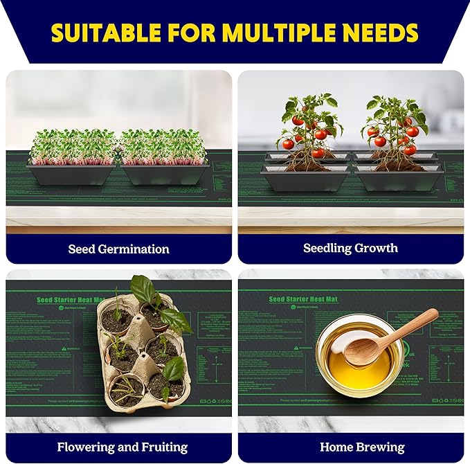 iPower Seedling Heat Mat Waterproof Durable Germination Station Warm Hydroponic Pad for Indoor Home Gardening Seed Starter
