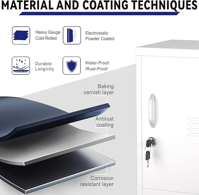 • HIGHER AND LARGER STORAGE SPACE:Steel storage cabinets : H24.1 * W13.8 * D11.8 inch , deeper than the same type of metal lockers for ample storage space, lockable storage cabinet can be used as employee locker, children's closet, locker room locker, school locker, kids's toy box, storage bench or bedside table.