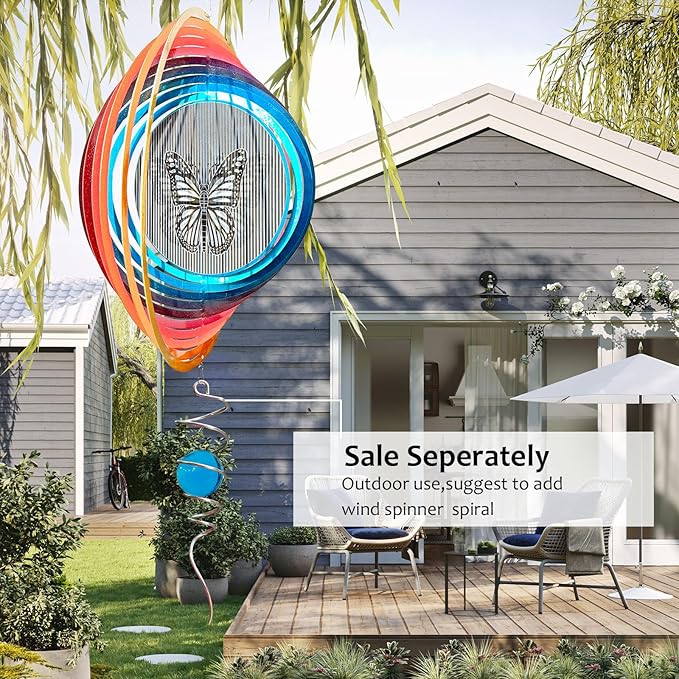 • ★【3D Animations Butterfly Design】12 inch Butterfly wind spinner follows the trendy kinetic 3D animated art design style.When the wind rotates 360 degrees,can see a Fluttering Butterfly,the dancing wings,Like a beam of light piercing the dark night, bringing freedom,beauty and Auspicious to your home. The graceful dance is like a flowing picture scroll,making people feel the beauty and vitality of nature,adding endless charm to your home.