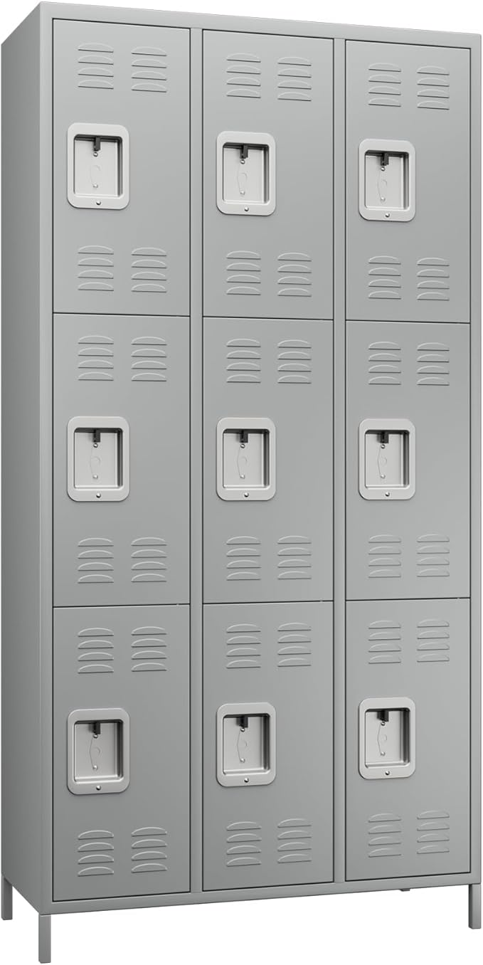 METAN Metal Storage Locker for School Office Gym Bedroom, 9 Doors Locker Cabinet for Employees, Industrial Steel Storage Locker with 18 Hooks, Assembly Required (9 Door-Light Gray)