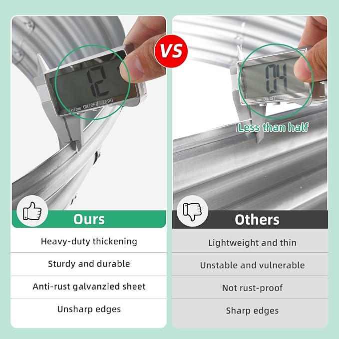 • 【Heavy-duty Thickening Galvanized Sheet】: Gartist outdoor raised garden bed is made of Q195 double-side galvanized steel sheet. Compared with ordinary galvanized sheet, the 1.2mm thickened galvanized sheet is more durable and sturdy, not easy to deform, and has improved anti-corrosion and rust resistance. It is more resistant to high temperatures and freezes, making it very suitable for outdoor use. Our raised beds for gardening with double layered rolled edge design, no need for rubber strips