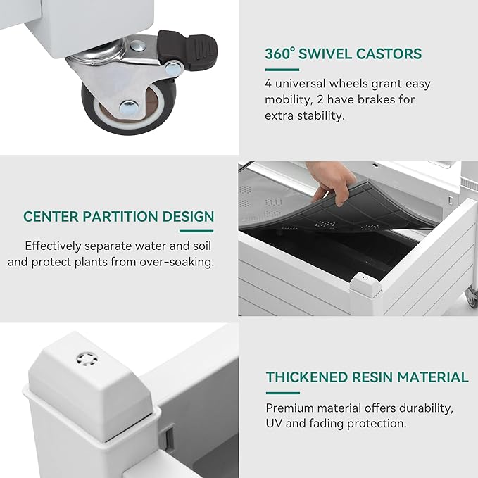 • Innovative Water Level Monitoring: Our planter box with trellis features a central divider that effectively separates soil and monitors water levels via a float system; Side drainage holes ensure optimal moisture control, ideal for plant growth