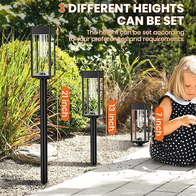 • All-Weather Durability: With their IP65 waterproof rating, these solar garden lights are built to withstand various weather conditions, ensuring long-lasting performance even during rainy or snowy days.