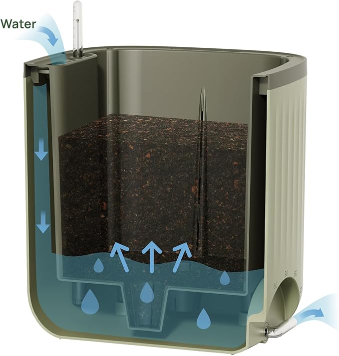 • Innovative Watering System: A reliable and efficient solution for delivering water to your plants without having to worry about overflow. Fill it once to water your planter for up to 1.5 months! This innovative design gives new gardeners a hassle-free way to start growing!