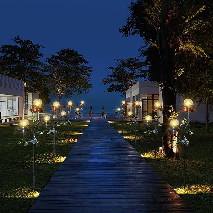 • Flower Decor and Wind Spinner: Inspired by the graceful flowers, these solar yard lights feature petals that can rotate 360° with the wind. They add a playful and enchanting touch to your garden.