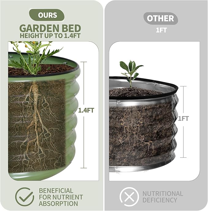 • 【Upgrade Quality & Structure 】The raised garden bed is made of thick galvanized metal with a surface spray coating, which is rust proof and anti-corrosion. Can be used for a long time. The oval design ensures uniform surface force and prevents deformation. More durable than other raised planter box, becoming a good helper for your garden.