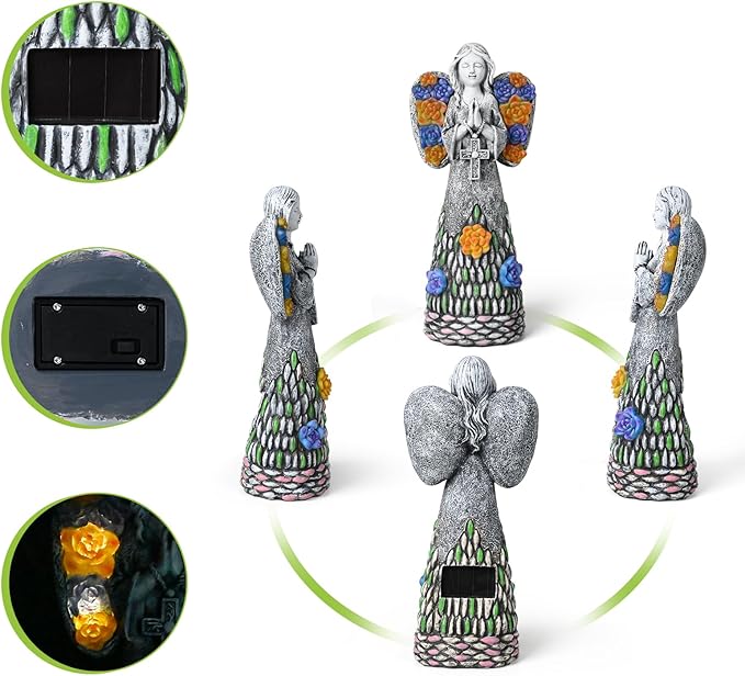 • 💎Solar Angel Statue Outdoor: The angel statues with eyes closed, holding a cross, wing emitting sparkling light and possessing divine power. she seemed to be praying.The Lord is my helper;I will not be afraid.