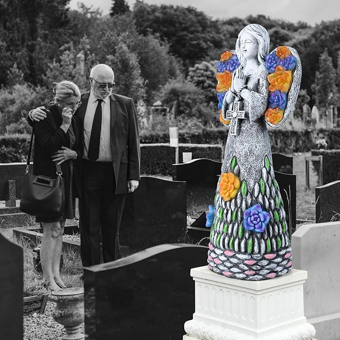 Yiosax-Garden Angels Outdoor Statue-Solar Lights Decor - Solar Angels for Cemetery Grave Cross Praying Succulent Wings Remembrance Angel Figurine Lawn Yard Decorations, White, Yiosax-Angel04