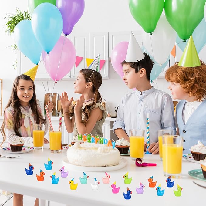 • CUTE HAT DESIGN - Our mini ducks aren't just adorable, wearing various colors of birthday party hats, look vivid and eye-catching, which will easily grab kids' attention and bring more happiness to your birthday, festival, party, gathering