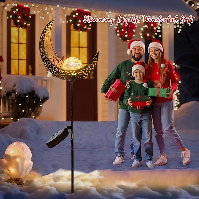 • Big Size: 8”x7.7”x40”.Made of Antique Metal and Crackle Glass,It looks like moon staff .Great for decorating your pathway ,garden,lawn, pool, patio or courtyard. It's a Great gift for Mom, Sisters, Child, Grandma, Grandpa, Wife's wedding anniversary, Mothers' day, Kids' Birthday, House warming, Anniversary, Valentines, Womens’ Day Thanksgiving Christmas etc.