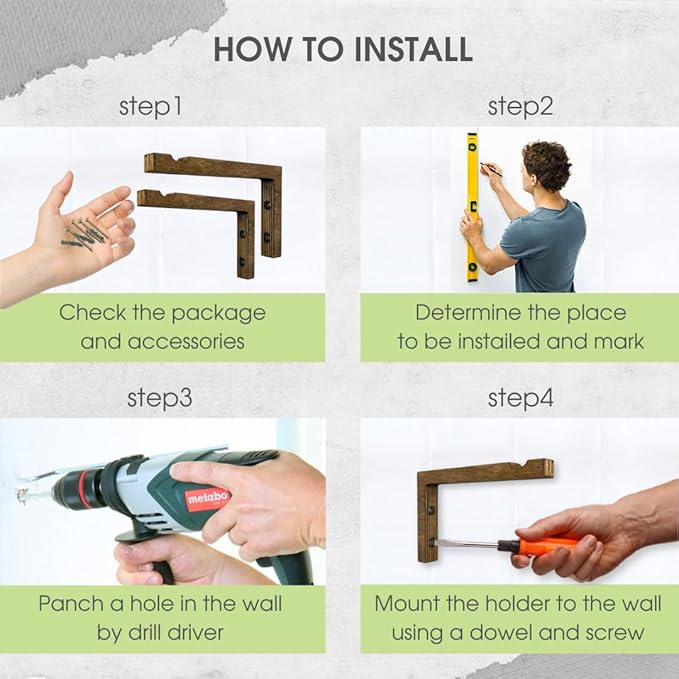 • EASY INSTALLATION: With the included hardware and easy straightforward instructions, mounting our plant hanging bracket for wall is a breeze. Our hooks for plants comes come with 4 screws, 4 dowels and 4 self-adhesive screw covers for installation.