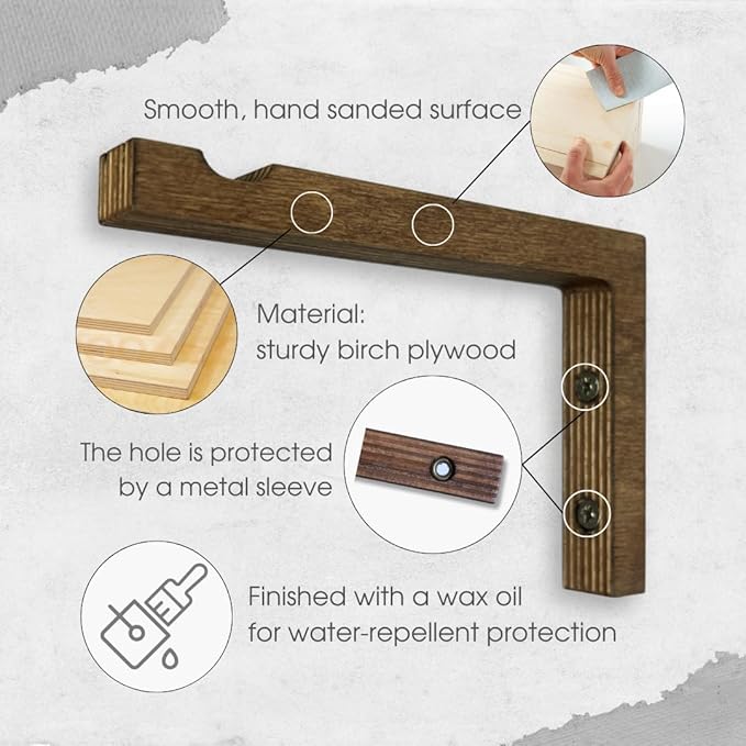 2-Piece Set of Plant Hooks for Wall 6 Inch - L-Shaped Mounted Wooden Plant Hook - Indoor and Outdoor Bracket Plant Hanger for Planters, Lanterns, Bird Feeders and Plant Basket (Walnut)