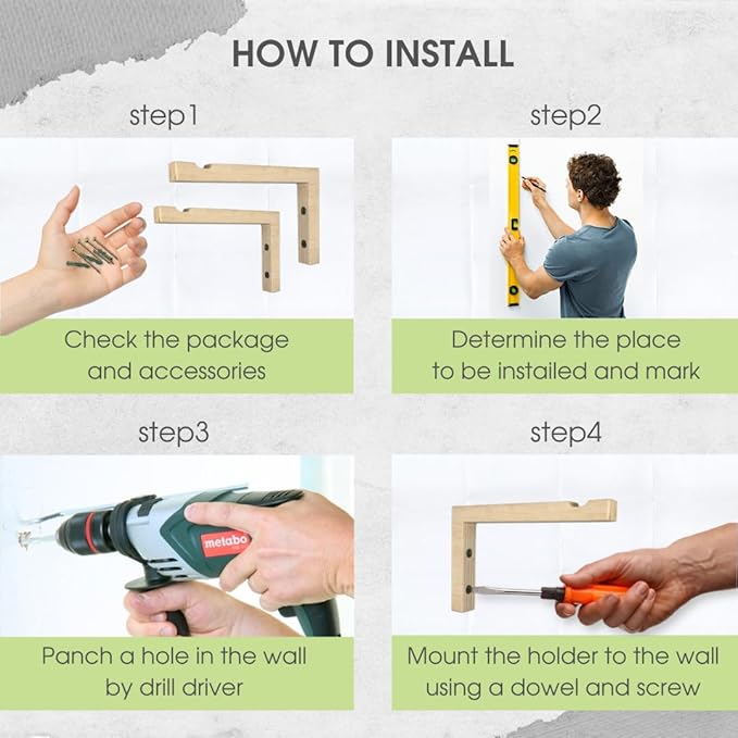 • EASY INSTALLATION: With the included hardware and easy straightforward instructions, mounting our plant hanging bracket for wall is a breeze. Our hooks for plants comes come with 4 screws, 4 dowels and 4 self-adhesive screw covers for installation.