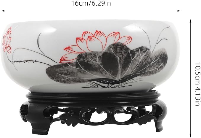 Ceramics Water Lily Bowl with Stand Chinese Style Hydroponic Planter Pot Round Narcissus Flowerpot Bonsai Daffodil Planting Container Garden Decoration 7 Inch