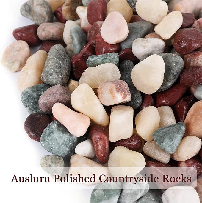 5lbs Natural River Rocks, Polished Pebbles for Plants Garden, 0.3-0.8 inch Decorative Countryside Stones, Ideal for Fish Tank, Vases, Home Decor and Garden Landscaping,Countryside