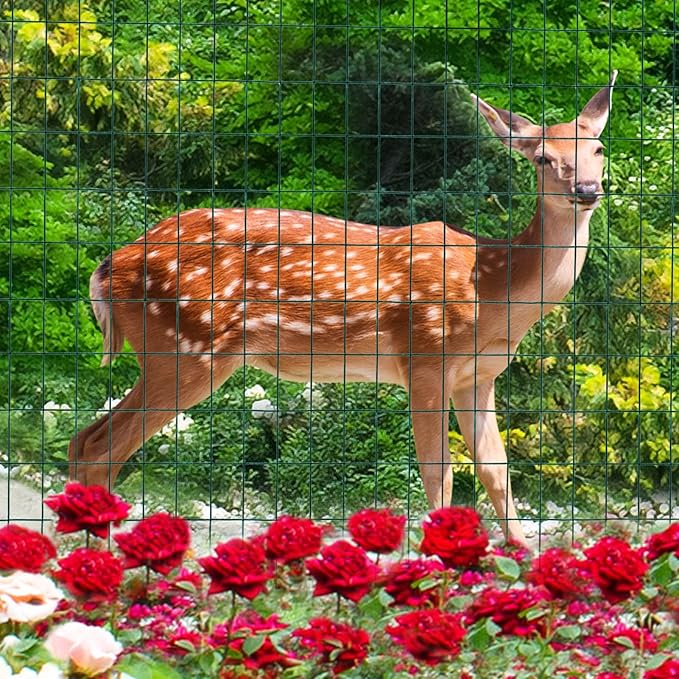 Green PVC Coated Welded Wire Fence 48 Inch x 50 Foot, 2 Inch x 3 Inch 16GA, Garden Border Fencing Roll Vinyl Coating Metal Wire Mesh for Yard Vegetable Plant Protection Poultry Netting